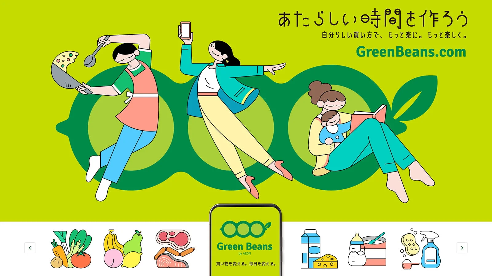 イオンネクストはネット専用スーパーGreen Beans(グリーンビーンズ)で家事の時間をもっと楽しく充実した時間に変えていきます。